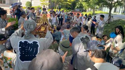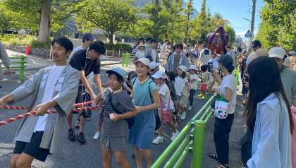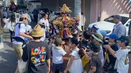 子どもたちは法被を着てお神輿を担いだり、山車を引いたりして、普段学校では見られない一面も見せていました。子どもたちの笑顔はキラキラ輝いていました。
