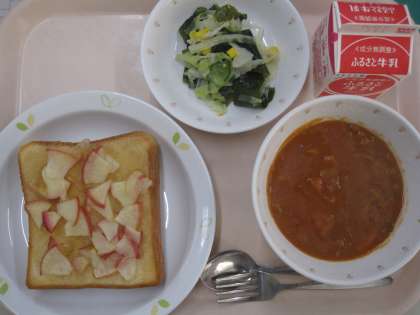手作りアップルトースト 牛乳 海藻サラダ トマトシチュー