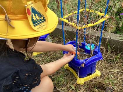 5月から一生懸命育てたあさがおを,最後まで大切に扱うということで,あさがおのつるをリースにしました。長く絡んだつるを支柱から外す作業は大変でした。保護者の方々にお手伝いをしていただきながら,一人一人立派なリースを作ることができました。教室前で乾燥させ,乾いた頃に飾り付けをする予定です。
