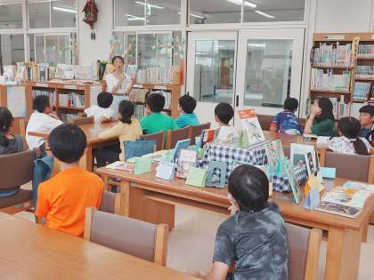 図書の先生から、動物愛護週間にちなんだ図書室にある本から、生き物の不思議について話を聞いた後、一人一人が本を探して借りました。(9月27日)