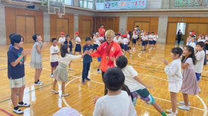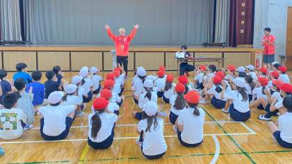 「だれもがかかわり合うために」の学習を進めています。今日は、パリパラリンピックのゴールボール競技で活躍し、金メダルを獲得した佐野優人選手をお招きして、授業を行いました。ゴールボールは、視覚障かい者が行うスポーツで、音を頼りにボールを投げ、ゴールを守る競技です。