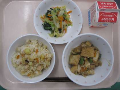 秋の香りごはん 牛乳 おひたし 生揚げとそぼろの煮もの