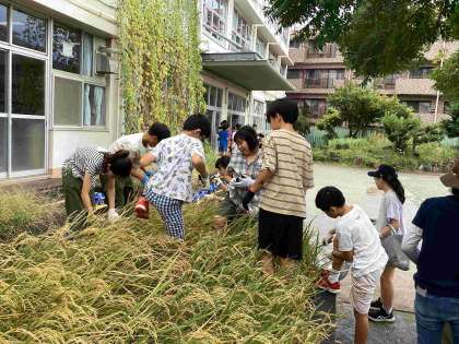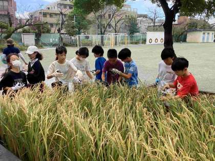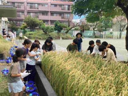 1学期に植えた稲が実り、5年生全員で稲刈りをしました。たくさん実り、稲穂が大きく育っていたので刈るのも一苦労でした。ご協力いただいた、おやじの会の皆様に感謝致します。ありがとうございました。