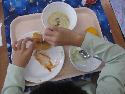 給食中の様子 〜セルフウィンナードック作り〜