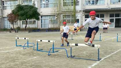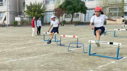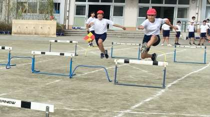 ハードル間の距離を変えて、いくつかのレーンを作りました。走りやすいレーンで、リズミカルに走り切ることができるように、繰り返し練習していました。後半は、タイムトライアルをして成果を確認しました。