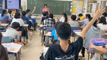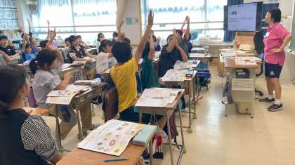 「まかせてね 今日の食事」の学習が始まりました。今回の調理実習の献立は、子どもたちが考えた献立の中からコンテスト形式で投票して選ばれることを知ると、子どもたちは目を輝かせました。給食の献立を立てている栄養士から献立を立てる際に留意している点についてのお話を聞き、献立の立て方について理解を深めました。