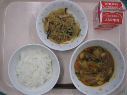 ごはん 牛乳 チャプチェ 韓国風肉じゃが