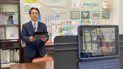学校長は、1年生が書いた詩「努力の壺」を朗読し、子どもたちに学芸会に向けてのメッセージを伝えました。週番の教員は、今週の目標『きまりを守って安全に生活しよう』について、具体的にお話しました。