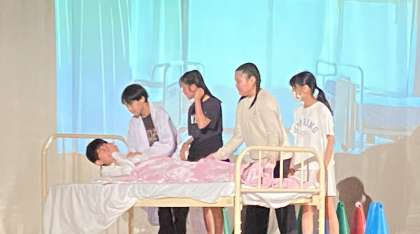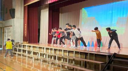 時間をテーマにした演劇『かけがえのない時間』は、担任が脚本を書き、題名は子どもたちが考えました。迫力のある演技を繰り広げています。