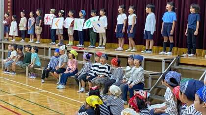学芸会前日。児童鑑賞日と同じ順番で実施しました。各学年のリハーサル終了後に記念撮影をしました。