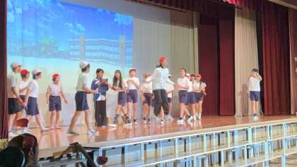 よりよい劇を創り上げようと、子どもたちは一生懸命です。台詞や動きが観るたびに変わっているので、驚きます。最後に子たちからメッセージがあります。お楽しみに。