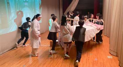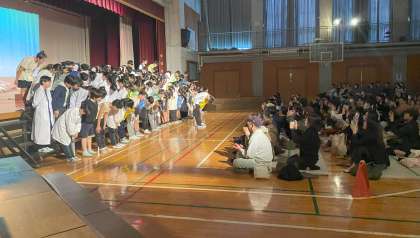 エンディング曲『生きる』は、担任が書いた脚本から子どもたちがイメージした言葉を募集して、音楽専科の教員が作詞、作曲をしました。子どもたちからのメッセージは、保護者の皆様、ご来賓の皆様に届いたことと思います。ご観覧、応援をいただき感謝申し上げます。