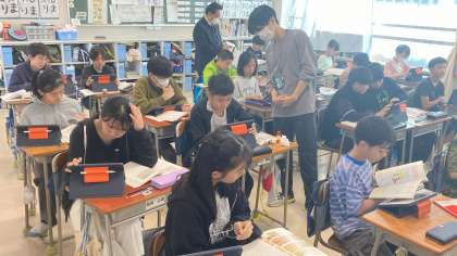 教材「『鳥獣戯画』を読む」の学習をスタートしました。線を引いたりPadletを活用して、感想を共有したりして、教材を読み進めていきました。学習問題を設定して、学習計画を立てました。