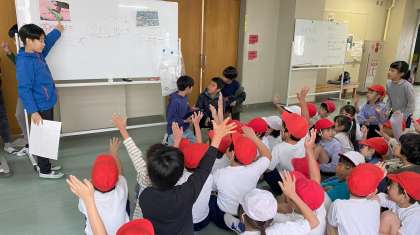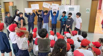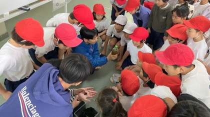 環境美化委員会の子どもたちが中心になり、休み時間に「ミミズ観察会」を開催しています。今日は、2年生を対象にミミズについて調べたことをクイズ形式にして、熱心に伝えていました。