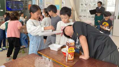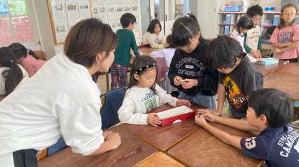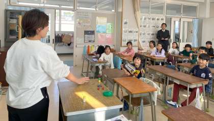 「あそんで ためして くふうして」の学習をしています。磁石、輪ゴム、風を利用して動きがあるおもちゃを作っていきます。今日は、いろいろと試してみて、作りたいおもちゃへの思いを膨らませました。子どもたちは熱中していました。