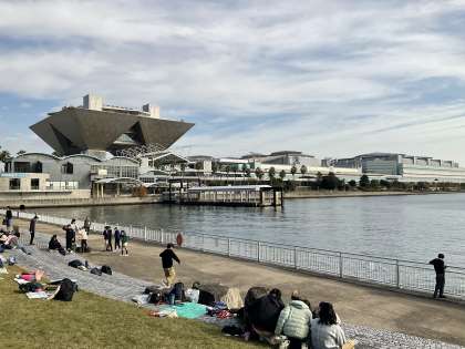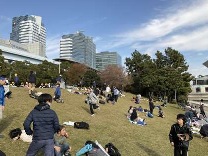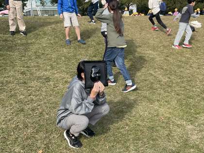 昼食です。水の広場公園にて食べました。食べ終わった人から遊んでいます。