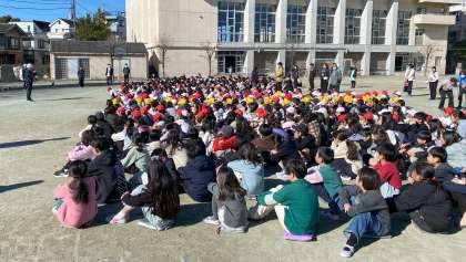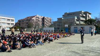 休み時間に「給食室より出火」を想定とした避難訓練を実施しました。子どもたちは、放送を聞いて、それぞれ遊んでいた場所から速やかに校庭に避難することができました。