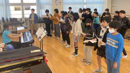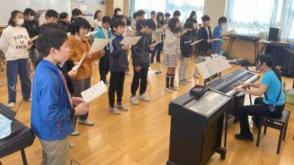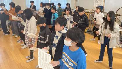 卒業式に歌う曲の学習が始まりました。「生きる」「旅立ちの日に」を美しい声で歌っていました。学芸会で披露した『生きる』の2番が、音楽専科教諭の作詞作曲で完成しました。