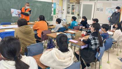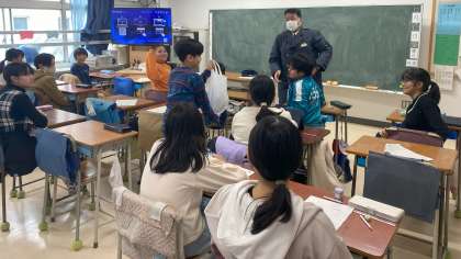 玉川警察署の方をお招きしての授業です。万引きについての指導と小学校生活あと3か月間のクラスでの過ごし方、『絆』についてお話をしていただきました。また、絆を深めていくたのメッセージとお土産もいただきました。