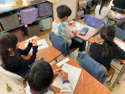 「チューリップをそだてよう」では,来週植える予定のチューリップの球根の観察を行いました。大きさや形,匂いや触り心地を確認し,観察カードにまとめました。