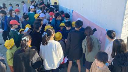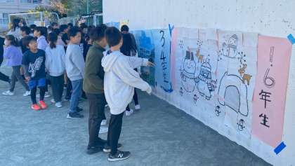 集会委員会の児童が計画を立てた『玉堤を完成させろ!』を行いました。1年生と6年生、2年生と5年生、3年生と4年生がチームを組み、4人一組をつって、集会委員の児童からパズルのピースを受け取ります。パズルを一番に完成させることができたのは、1年生と6年生のチームでした。