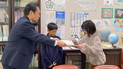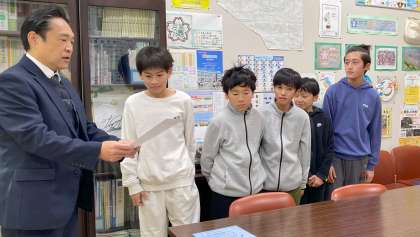 校長は、6年生と給食の時間に会食をしている際に、子どもたちが将来の夢や6年間の思い出などについて話していることを伝えました。そして、自分の経験談をもとに「失敗は成功のもと」についてお話し、クラスのみんなで成長できることを願いました。