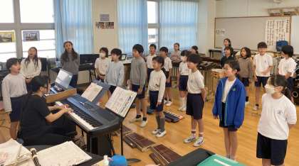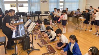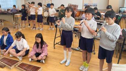 最後に披露したのは、授業の前半で繰り返し練習していた「ゆかいな木きん」の合奏です。リズムに乗りながら、楽しそうに演奏する姿がとても印象的でした。