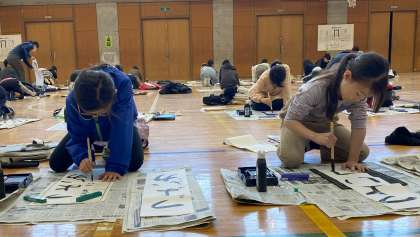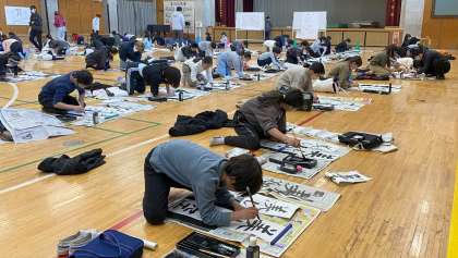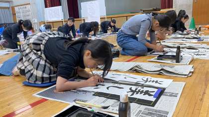 冬休み初日の12月26日、書き初め練習教室を実施しました。1月に行う席書会に向けて、一生懸命練習していました。どのような筆遣いをしたらよいか、地域の方に積極的に聞きながら取り組んでいました。