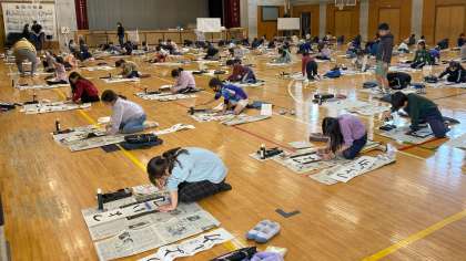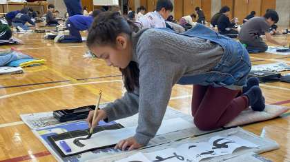 1時間、熱心に練習してから清書しました。緊張感をもって取り組み、伸び伸びとした文字を書いていました。