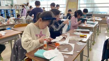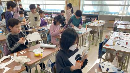 「たまごから生まれてくるもの」から発想を広げ、たまごの模様、生まれたものなど、イメージを膨らませて作品をつくりました。