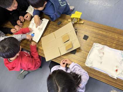 2年生の作った手作りおもちゃを,1年生は遊ばせてもらいました。磁石や風,ゴムなどの力を使って動くおもちゃを楽しく遊ぶことができました。