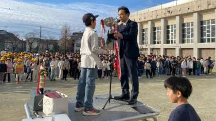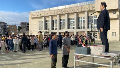校長は、世界各国で反響を呼んでいる世田谷区の学校が舞台となった映画「THE MAKINNG OF A JAPANESE」についてお話しました。次に、野球の大会で活躍した児童の表彰を行いました。