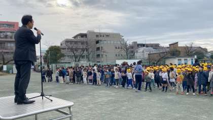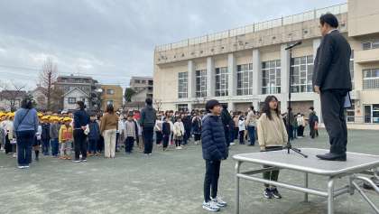校長は今日の校庭の気温が5度であることや節分、立春についてお話しました。週番の教員は、今週の目標「手洗いをしっかりしよう」についてお話しました。