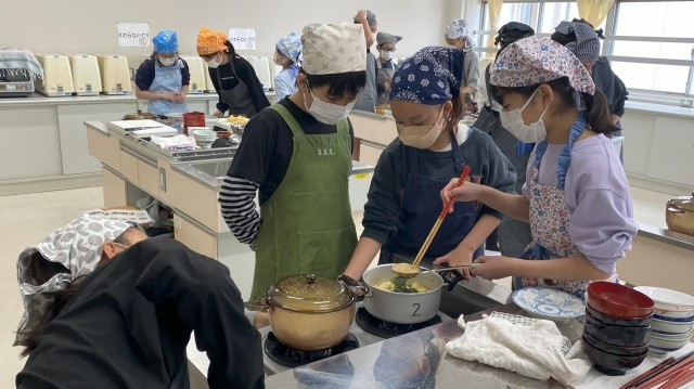 ごはんやみそ汁について詳しく学んだ後、子どもたちが楽しみにしていた調理実習です。