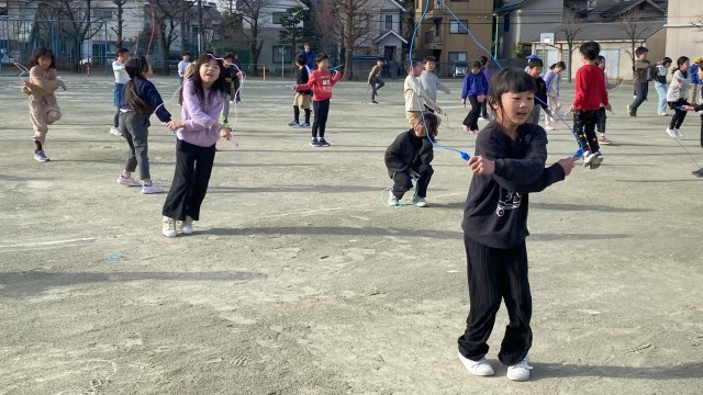 かけ足跳び、あや跳び、交差跳びに挑戦しました。