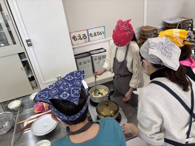 ご飯担当とお味噌汁担当に分かれ、手順を確認してから、実習に臨みました。