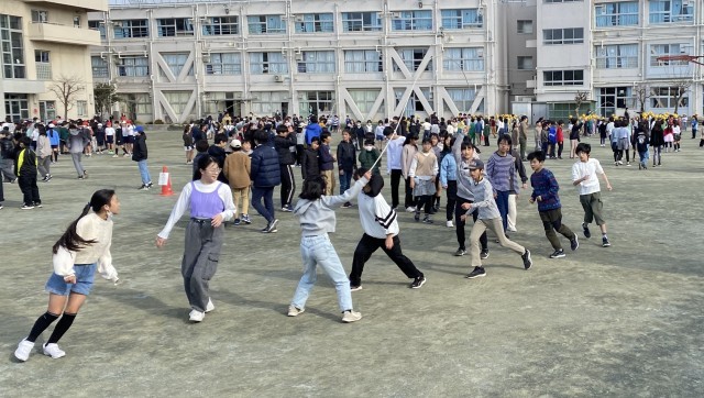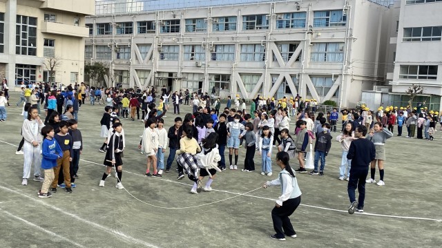 体育朝会 公開日 2025/03/16 更新日 2025/03/16 その他の教育活動 クラスごとに休み時間や体育の時間に取り組んできた、長縄跳び。3分間で何回跳ぶことができるか、前回の体育朝会での記録をもとにして、チャレンジします。練習の成果を発揮しているクラスが多かったです。取り組んでいく中で、クラスの子どもたちの絆も深まっていきました。 +4 いいね(0) 朝会