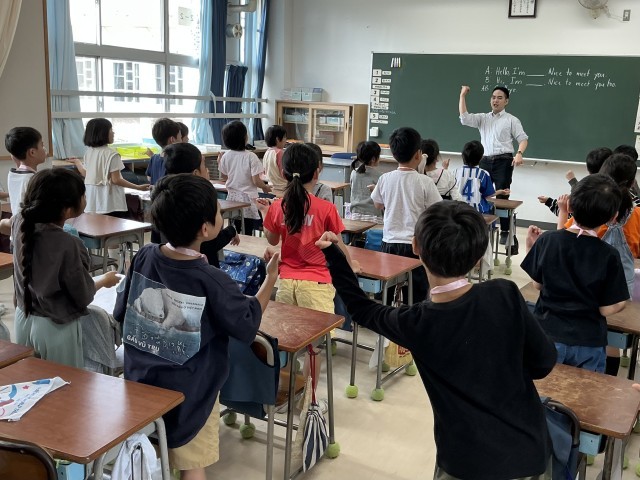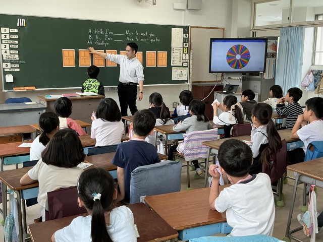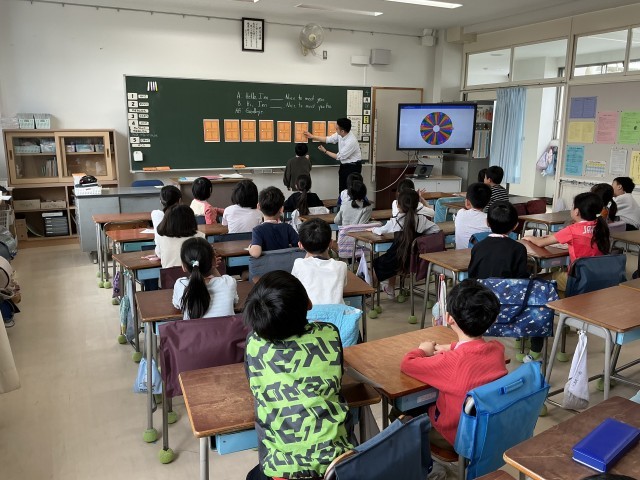2年生になっての初めての外国語活動をしました。まずは、ALTの自己紹介を聞き、ハローソングを歌いました。その後は、英語の自己紹介の言い方を学び、たくさん練習をしました。