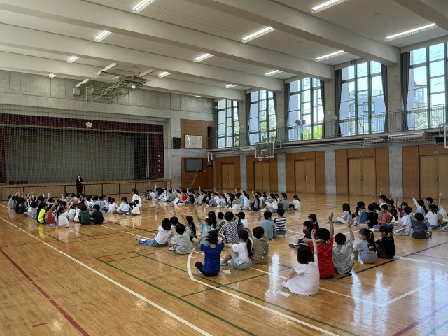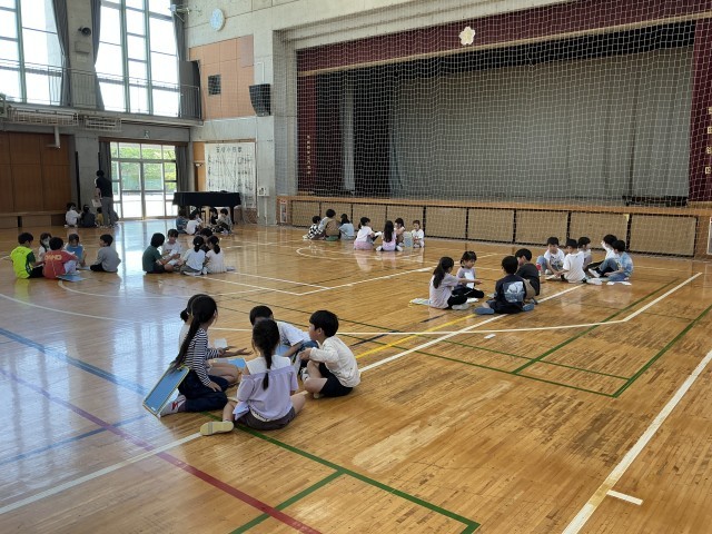 来週の学校探検のために、初めて1年生と2年生で交流会をしました。グループのメンバーとの顔合わせをし、手作りした名刺の交換をしました。その後はグループごとに2年生が考えた遊びやお話をして、仲を深めました。