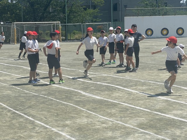 子どもたちは、暑さに負けず、何度もバトンパスの練習を行っていました。