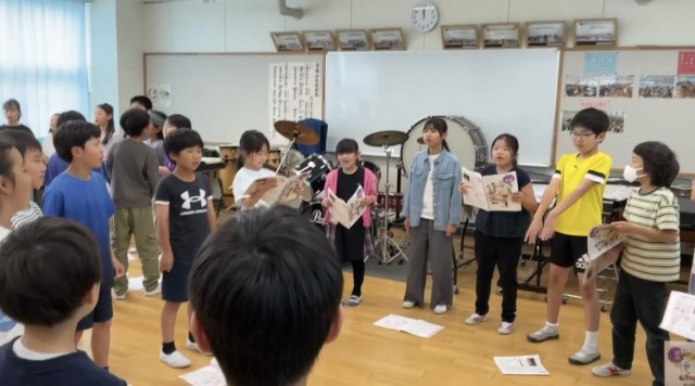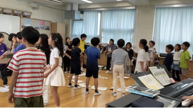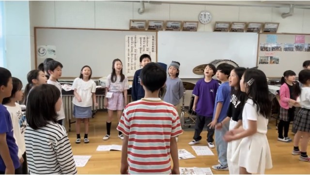 4年生の音楽「歌声のひびきを感じ取ろう」の学習で、「小さな世界」「いいことありそう」を担任の先生に聴いていただきました。