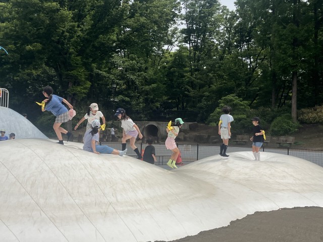 美味しいお弁当とおやつを食べた後は、しながわ区民公園で思いっきり汗を流して遊びました。キラキラと輝く笑顔で楽しんでいました。