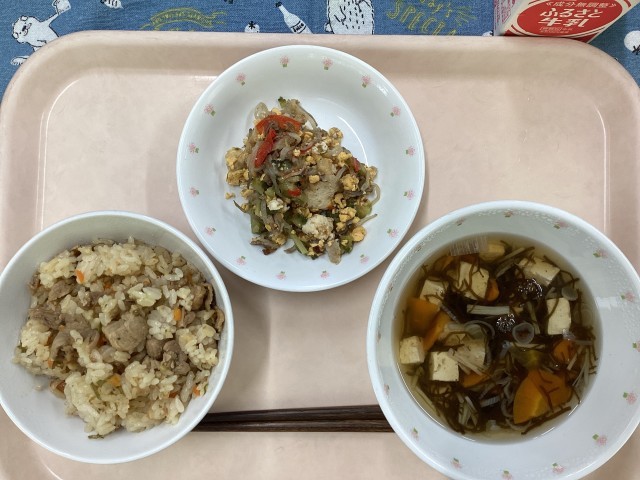 今日は、沖縄慰霊の日なので、沖縄料理を作りました。ゴーヤは、塩と砂糖でもんで食べやすくなるよう工夫しました。