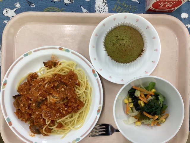 旬の野菜のなすを油で炒めて、ミートソースに入れました。