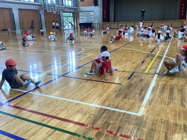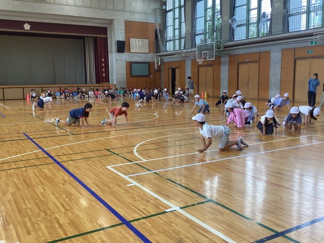 1学期のスポチャレ種目は「いろいろ鬼」です。クモ鬼やハイハイ鬼などをします。