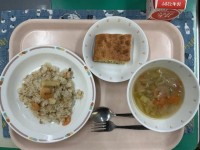 カレーピラフ牛乳豆腐のナゲットウインナーと卵のふわふわスープ