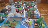 やわらかなスチレンに、さまざまな型で跡を付けます。組み合わせ方で、どんなことを表...