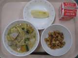 ほうとう 牛乳 じゃこ豆 くだもの(りんご)