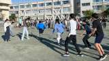 クラスが1チームになり、長縄跳びを行いました。3分間で何回跳べるか競い合います。...