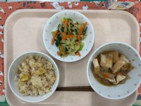 秋の香りごはん牛乳生揚げとそぼろの煮物おひたし秋の香りごはんは、くりとさつまいも...